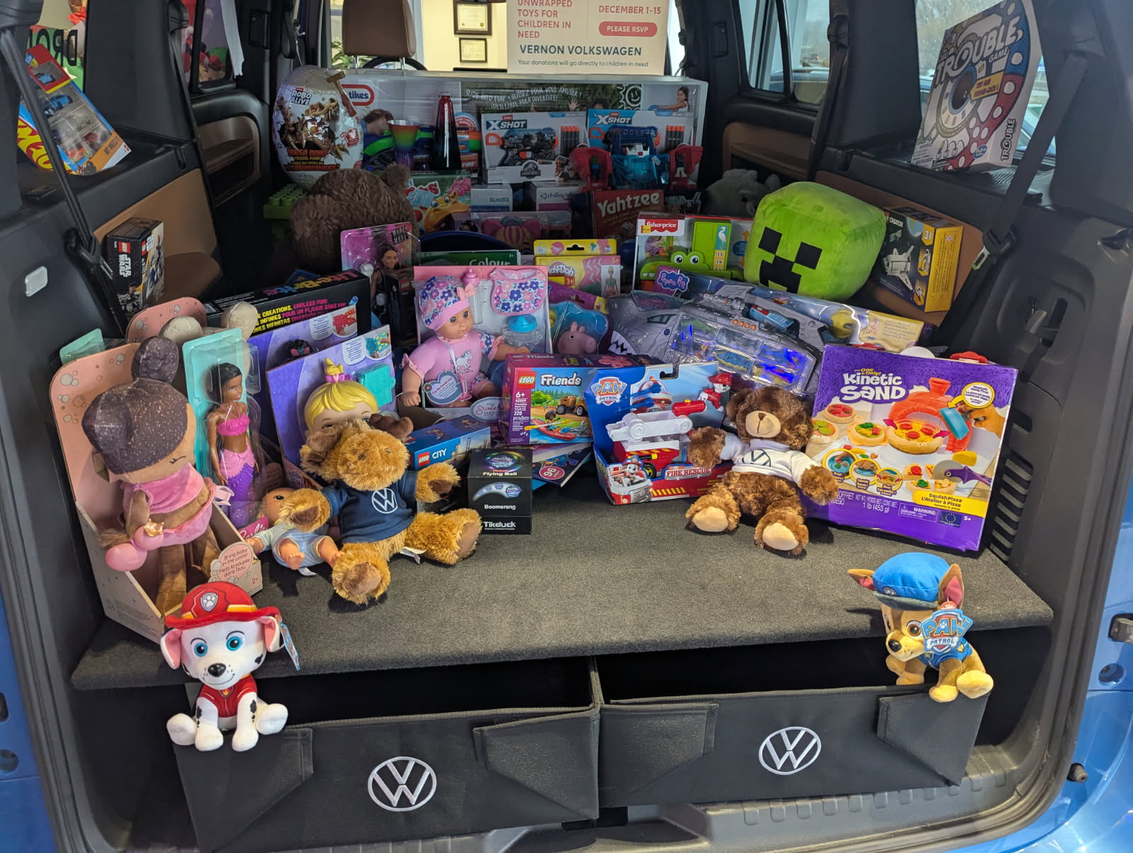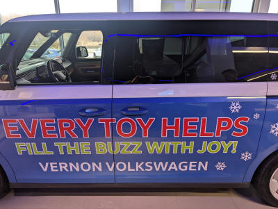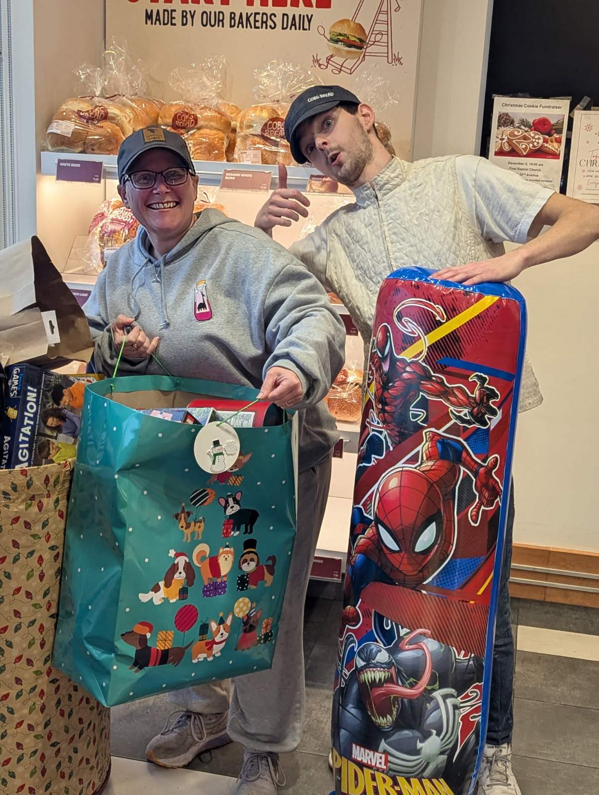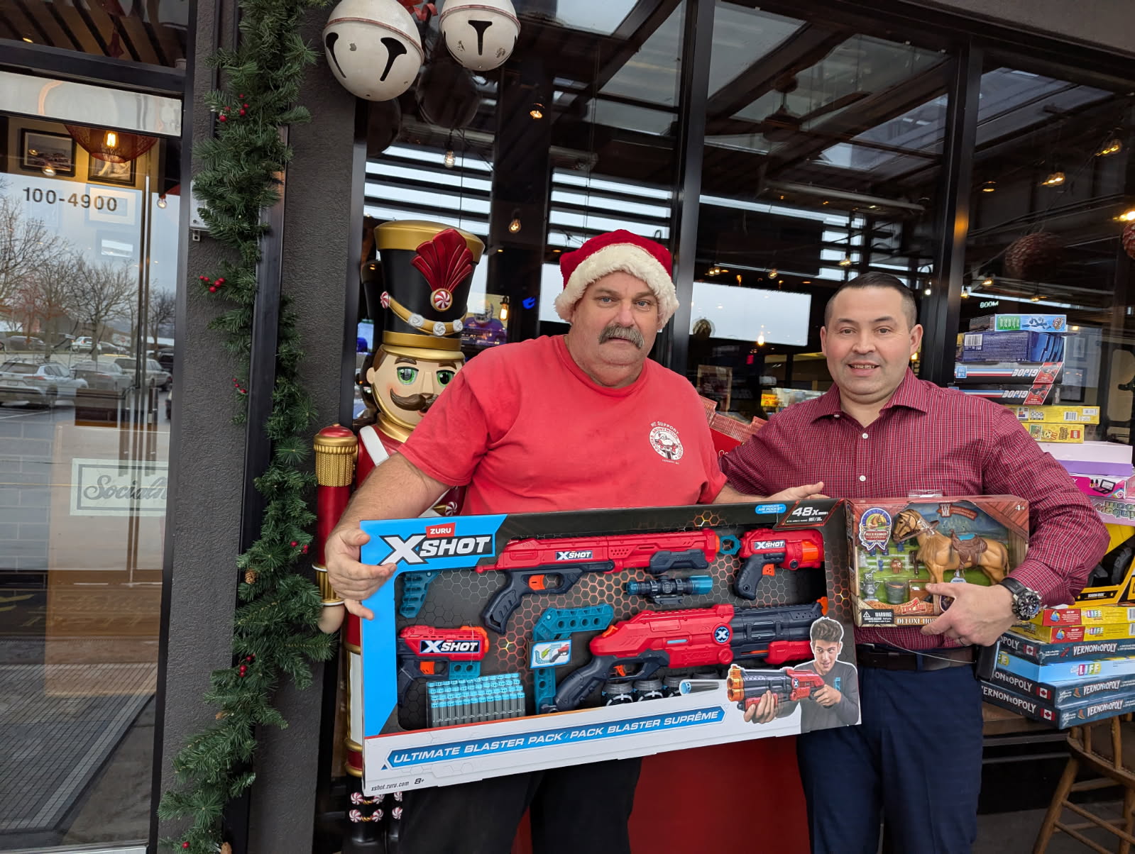 ![]() Perry with Gerran the owner of Browns Social House with toys garnered from the annual toy drive event 2024 Christmas Donations Cobs Bread ![]() Heather and Shawn from Cobs Bread bring a new toy and get a free treat |